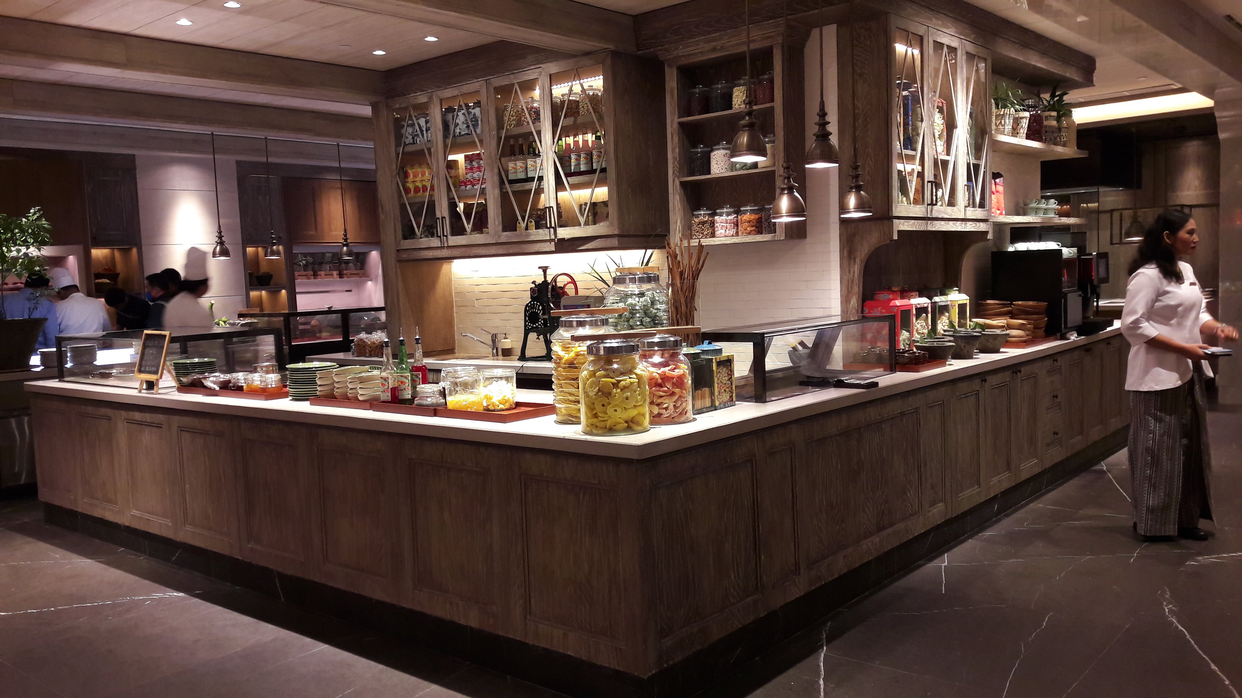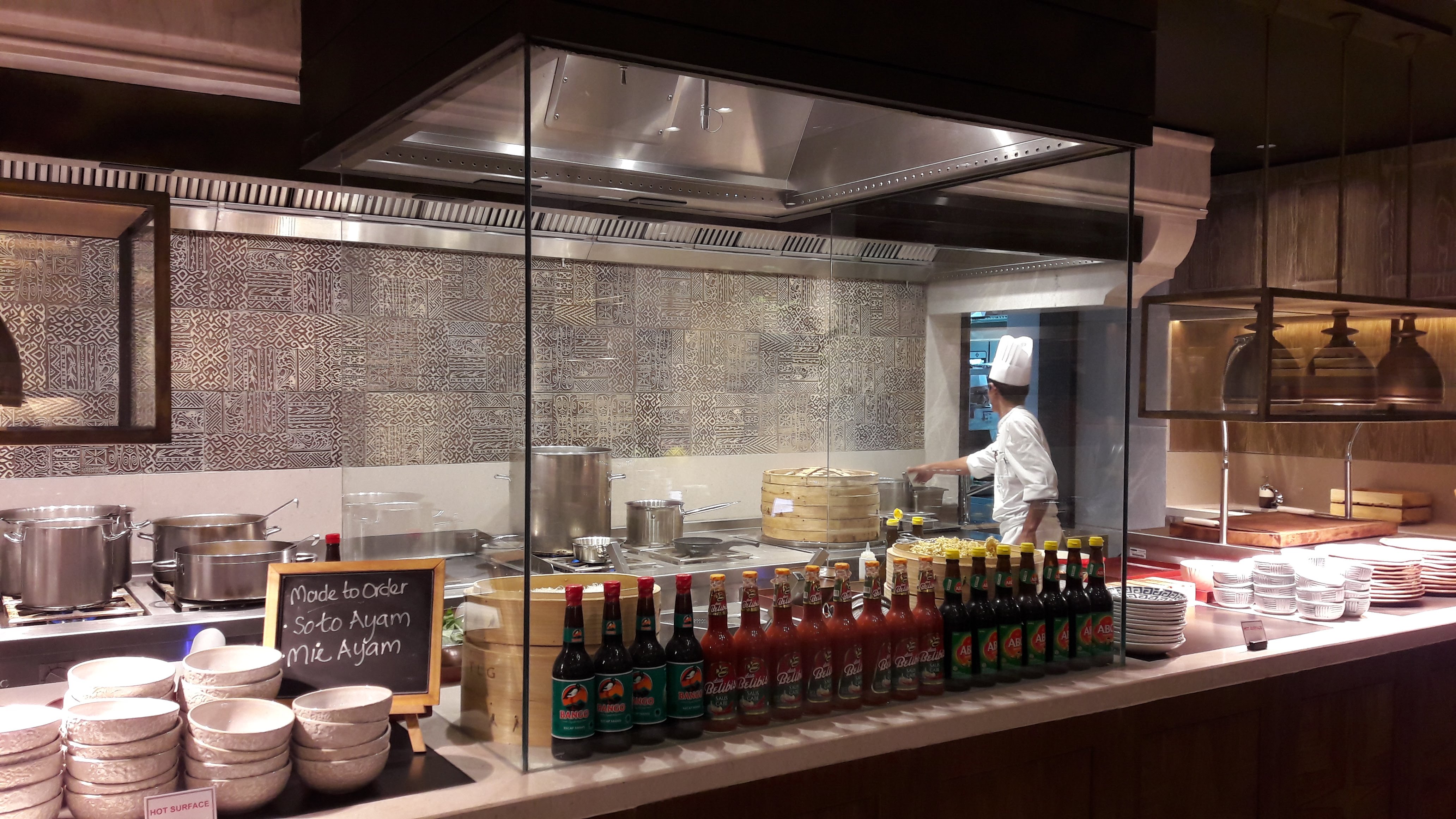Grand Café is an all-day dining restaurant offering a fresh made-to-order buffet that emphasizes local flavors. PT. Inti Tunggal have designed an elegant open-kitchen food service to serve exquisite taste and fresh cooked buffet for its guests to enjoy their foods with the feeling of Indonesian home interiors designed.